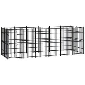 Outdoor Dog Kennel Steel 158.8 ft² (Color: Black)